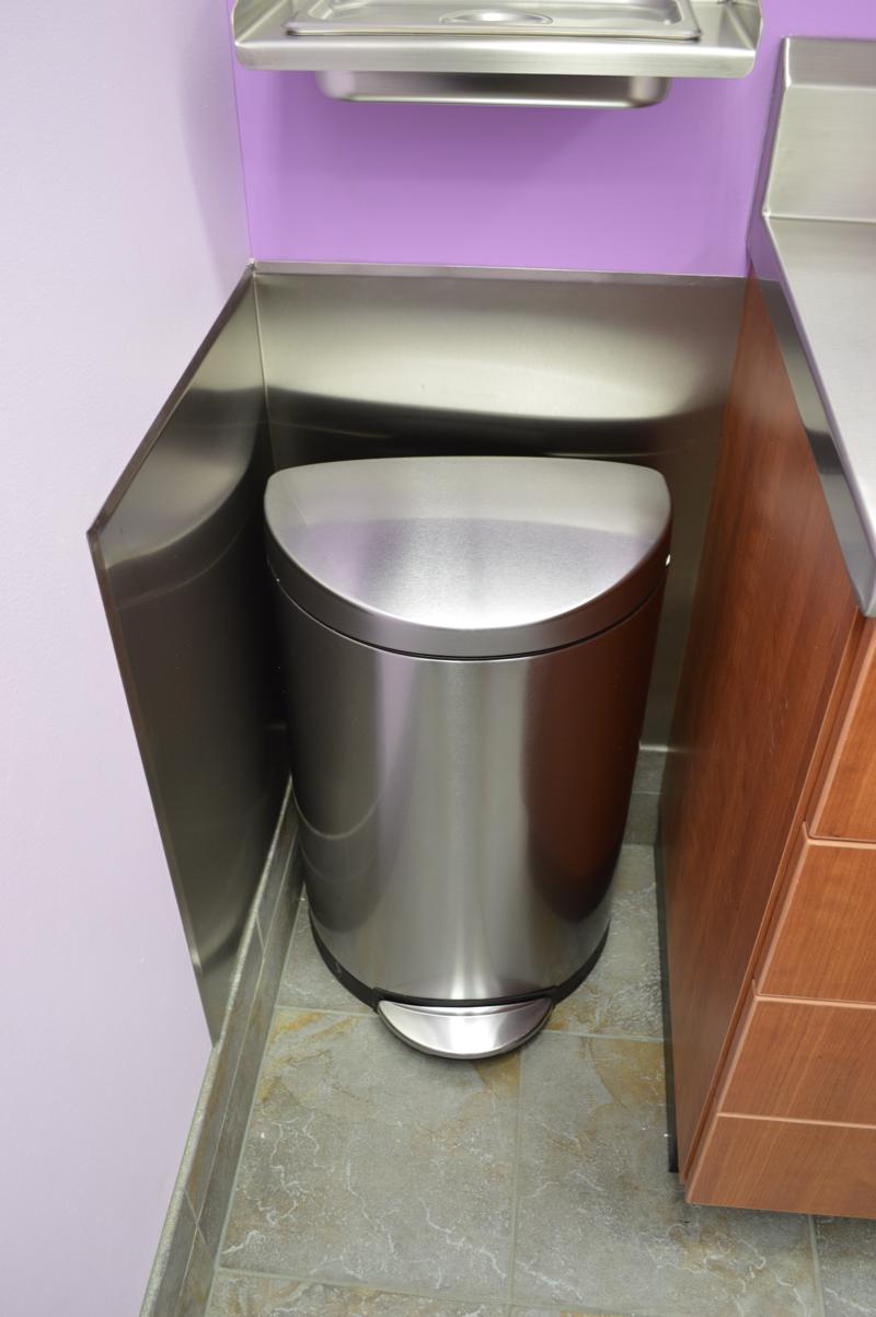 - Stainless backsplash makes waste areas easier to clean and more sanitary.